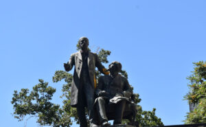 En la esquina de Alameda con Arturo Prat, se encuentra el monumento a los hermanos Miguel Luis Amunátegui y Gregorio Víctor Amunátegui, obra del escultor francés Denys Puech, inaugurada en 1906 gracias a una colecta pública impulsada por el historiador Diego Barros Arana.